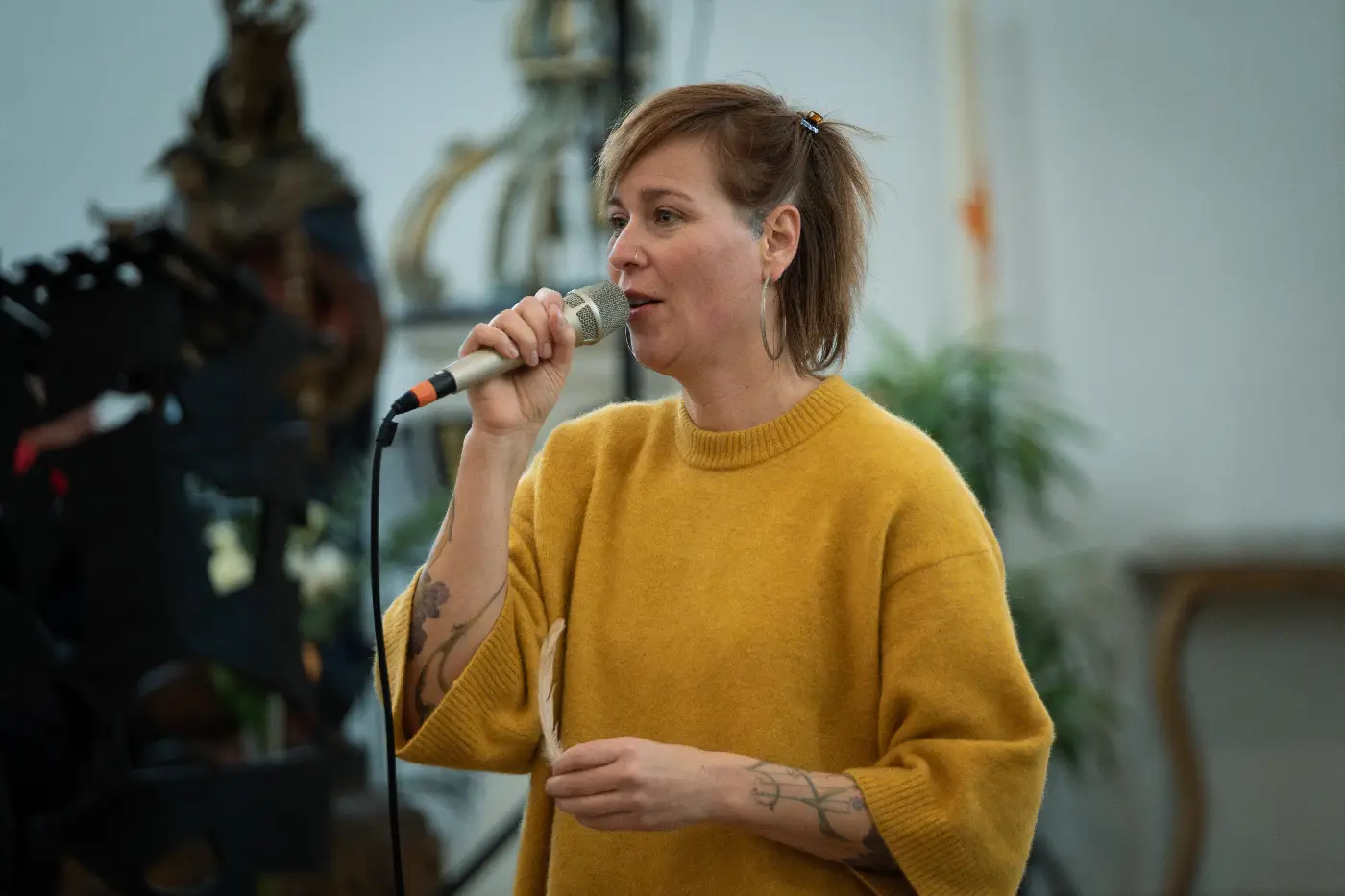 Les chanteurs imériens étaient accompagnés par le duo L’Horée de Bienne (Fanny Anderegg et François Membrez). Le programme Intitulé « Triptyque autour des anges » proposait des mélodies connues comme des compositions contemporaines. Le premier volet fit honneur à la Renaissance avec des œuvres de Praetorius, Sweelinck et Victoria accompagnées à l’orgue par Antonio Garcia. En deuxième partie l’Horée interpréta des œuvres électro-acoustiques, compositions de Fanny Anderegg.